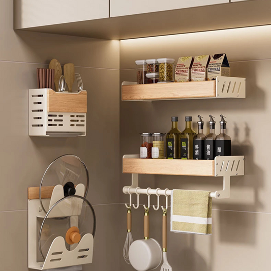 Simples à fixer avec des supports invisibles fournis, ces étagères en bois offrent des finitions variées – clair ou foncé – pour matcher votre décor. Envisagez-les comme des accents vivants : exposant épices colorées ou mugs artisanaux, elles convertissent un rangement mural basique en focal décoratif qui réchauffe l'atmosphère de votre cuisine.