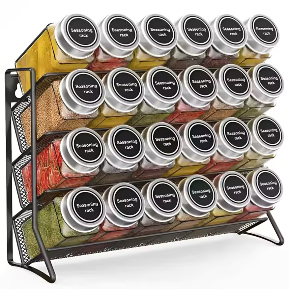 - Structure Accordéon Inclinée : Chaque étagère épice murale légèrement relevée pour une vue claire et un accès rapide aux épices, sans fouiller.