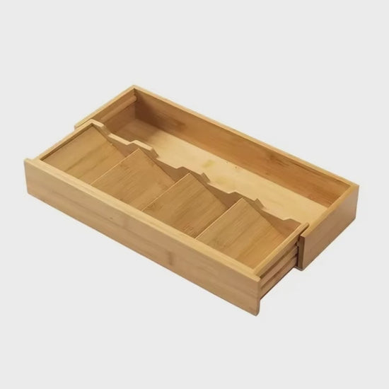 Fabriqué en bambou robuste et écologique, ce range-couverts apporte une touche chaleureuse à votre cuisine tout en respectant l'environnement. Le bois massif assure une durabilité exceptionnelle, résistant à l'humidité et aux usages quotidiens sans se déformer. Ses compartiments astucieux, adaptés aux fourchettes, couteaux et cuillères, évitent le désordre habituel des tiroirs surchargés. Grâce à son design rétractable, il s'étend pour offrir un espace supplémentaire dédié aux ustensiles plus volumineux, comme les spatules ou les pinces, transformant un simple rangement en solution polyvalente.