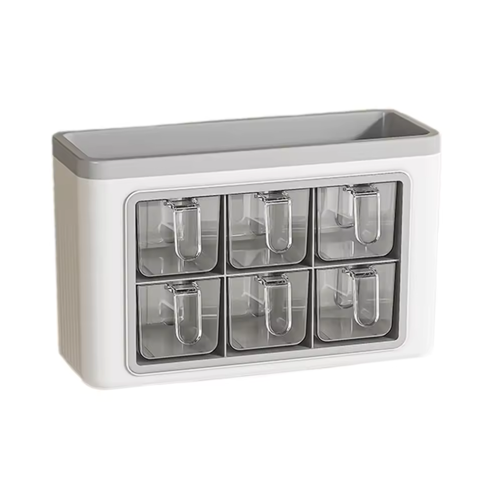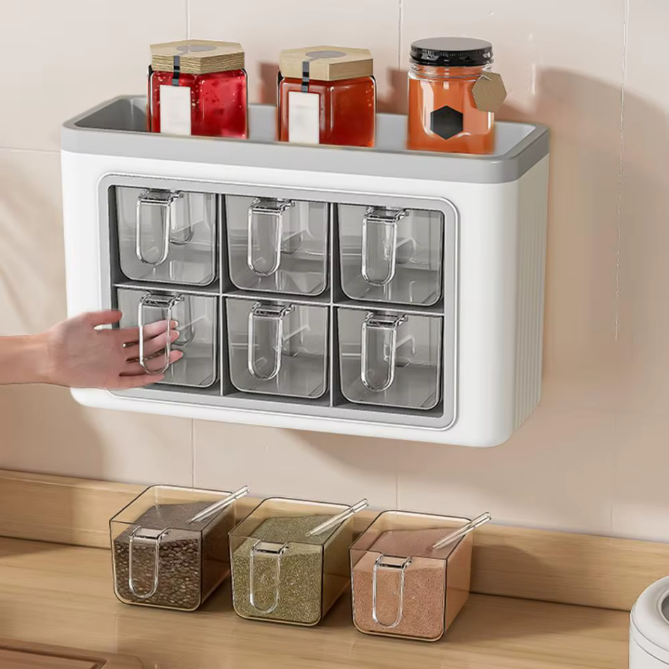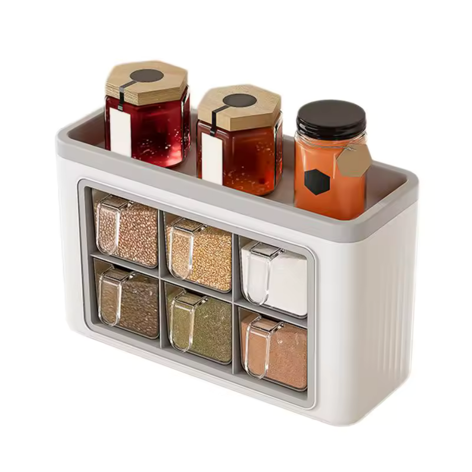 - Matériau Durable : Plastique robuste (probablement ABS/PET), résistant et pratique pour un rangement épice mural.