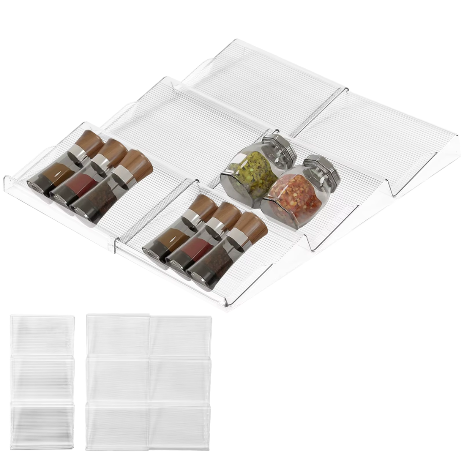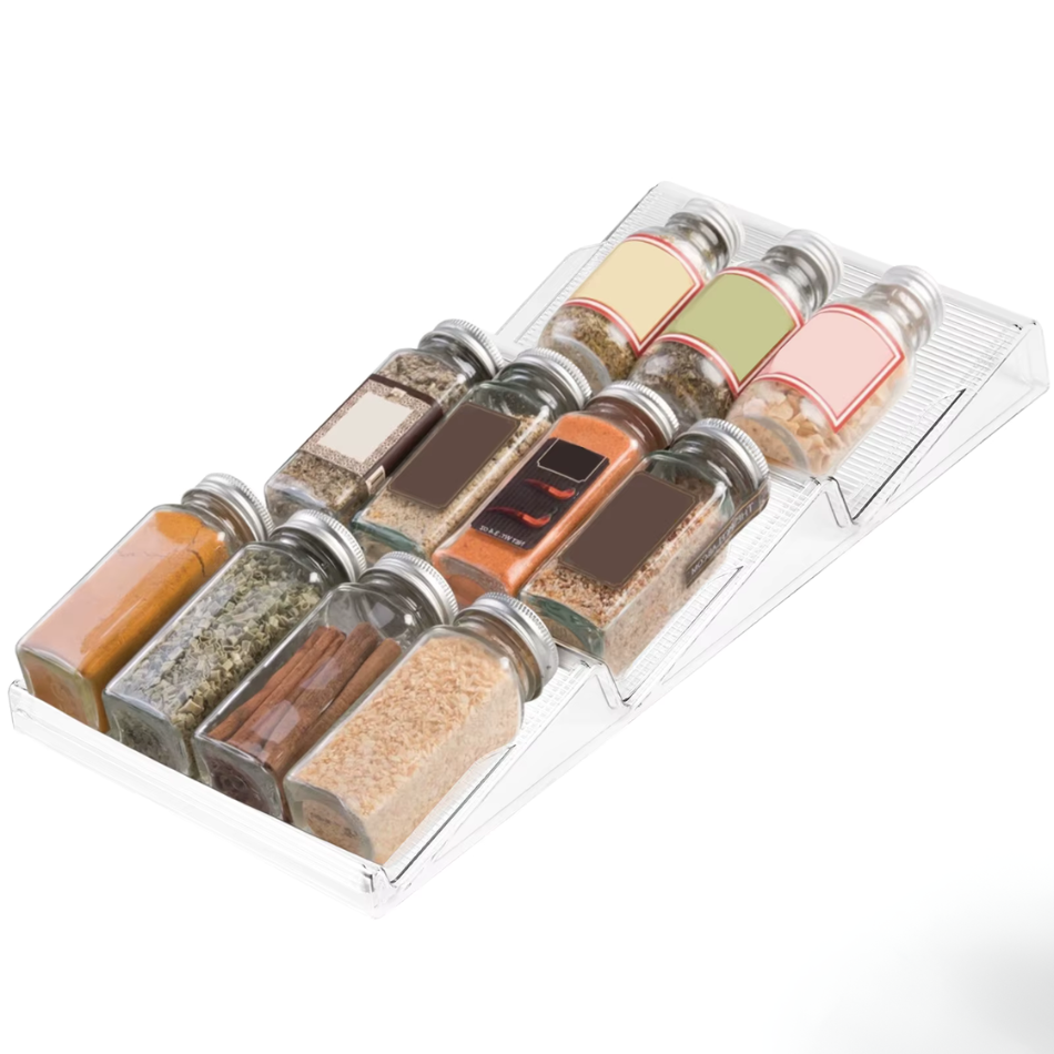 - Maximise l'Espace : Crée de la place dans tiroirs encombrés, armoires ou comptoirs pour un rangement épice tiroir ordonné.